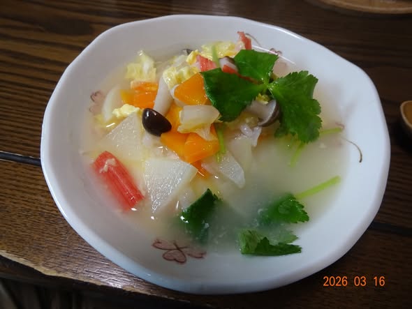 | 大根 人参 白菜 米が少なかったので 餅が入ってます |
