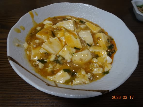 | ・麻婆豆腐 レトルトに追い 葱 韮 豆腐は絹 |