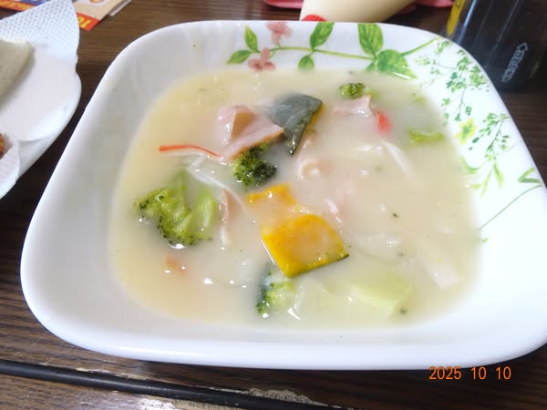 | クリームシチュー と総菜パンです |