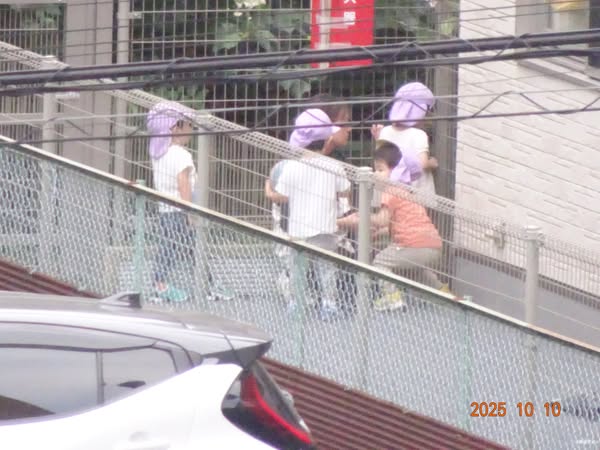 | 16時前 保育園方面を眺めたら 園庭で遊んでいるのが観えました |