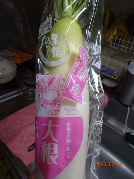 | KAMIさんが買ってきた 鰯のつみれ 里芋 船橋産の大根 |