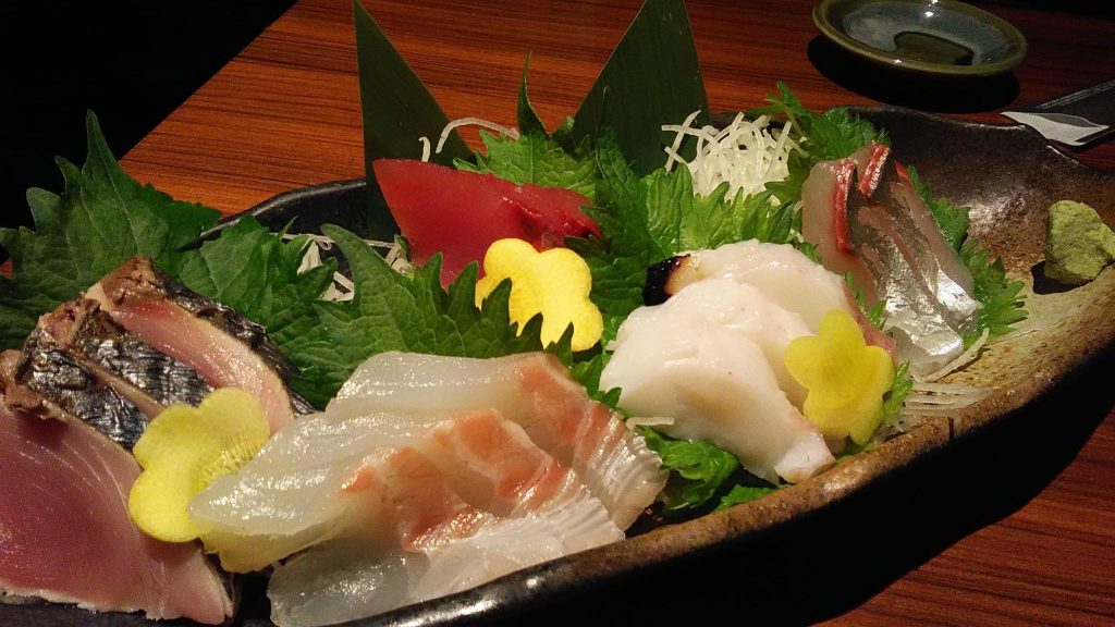 | 角上市場の刺身 ローストビーフ 独創おやき 他 微アル0.5🍻 |